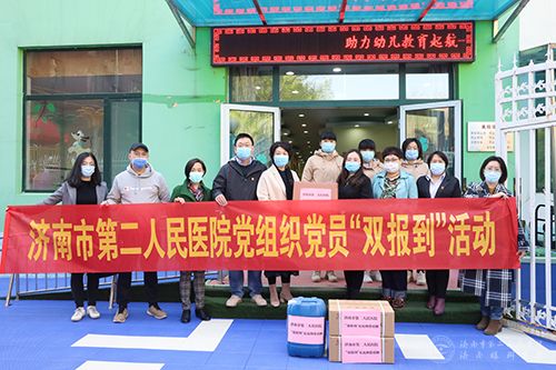 党委书记吕丽萍、副院长王俊峰、纪委书记李洁月等一行参加了与结对社区发祥巷社区的“双报到”活动,向该社区捐赠了医用外科口罩、速干手消毒剂、84消毒液等防疫物资,并与社区工作人员一起将防疫物资送到社区幼儿园。市二院院感办主任王静还现场对幼儿园的老师们进行了相关防疫知识的专业培训,为幼儿园复学提供保障。