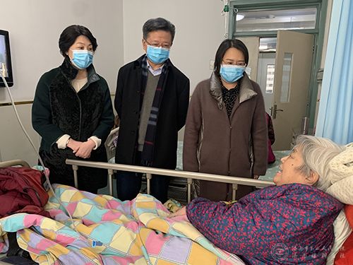 2月20日上午,离退休职工管理科在院党委书记吕丽萍、副院长张亚军、纪委书记李洁月带领离退休职工管理科等相关科室,看望慰问了生病住院的老院长、离休干部段景兰,为其送去牛奶、鸡蛋等慰问品。在病房里,吕书记详细询问了老同志的病情,转达了院党委的亲切关心和慰问,并再三叮嘱她安心养病,有需求及时告知,疫情期间做好防护,争取早日康复出院。
