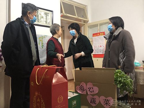 医院离退休干部李群今年已88岁高龄,常年独居家中,因为这次疫情来得突然,老人每日服用的治疗冠心病、糖尿病、高血压的药物很快就要吃完了,儿子又因小区封锁,送药送菜遇到困难。医院离退休管理科得知该情况后,迅速行动,一大清早采购了番茄、土豆、茄子、芹菜等新鲜蔬菜和慰问品,又帮忙开好常用药品,一并送到了老同志家中。吕书记关切询问了李老目前的身体和生活情况,并叮嘱老人在疫情防控期间,要加强自我防护,保持良好个人卫生习惯,注意御寒保暖,尽量避免外出。看着满满一箱的“爱心蔬菜”,听着亲切暖心的话语,老人感动地哽咽落泪,拉着吕书记的手久久不愿松开。