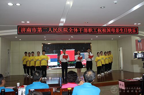 最后,经典的旋律《我和我的祖国》响起,大家齐声合唱,真诚表达二院人不忘初心,牢记使命,砥砺前行,不负梦想,不负新时代的决心和信心!(工会 黄烁)
