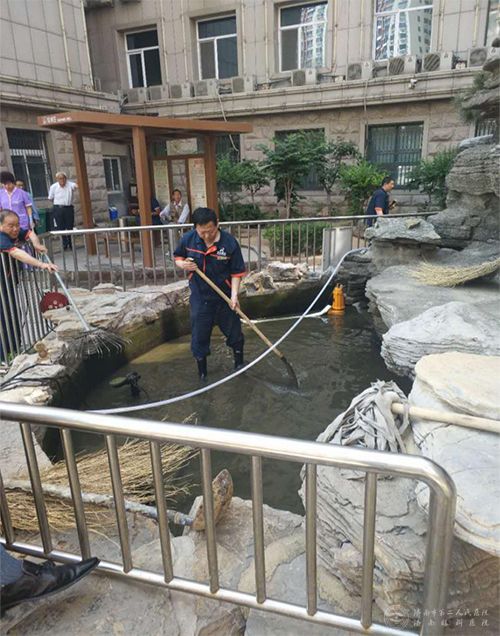 总务科组织工作人员顶着酷暑,对院内花坛、假山、鱼池等景观进行了绿化补栽、卫生清理等整治工作。
