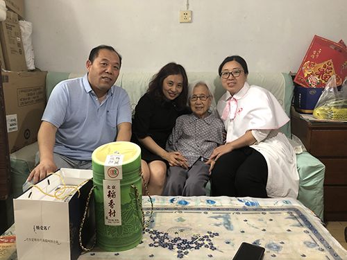 在老专家刘漪、关瑞卿家中,医院工作人员和志愿者与老人及家属拉起家常,亲切地询问老专家的健康和生活状况,耐心听取了她们对医院工作的建议和需求,并祝愿她们健康长寿、生活幸福。“巾帼文明岗”内科的医护人员还详细询问了老人的身体情况,为老人测血压,进行常规的健康检查,并根据检查结果,提出合理的用药及治疗建议。