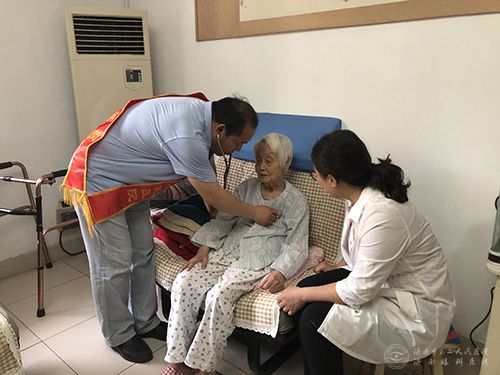 “巾帼文明岗”志愿者为老专家刘漪检查身体