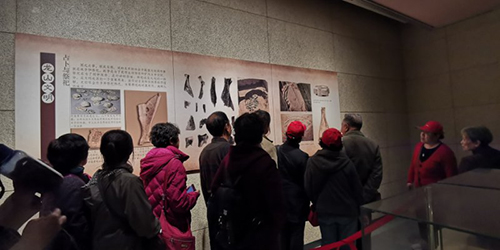 “平陵谷生三穗,龙米丰收仓满;历史流光溢彩,文明非凡再现,油菜花开平陵,美丽胜却人间。”伴随着隆重的开城仪式,在导游的带领下,老同志们首先参观了手工锻造铁锅工艺,了解到了铁锅如何经受万次锻打,直到锅如明镜完工的整个锻造工序;在龙山味道美食街,老同志们品尝到龙山贡米、龙米金汤、龙山水豆腐以及东坡素食等龙山美食。随后乘坐游览车,观赏小木屋、田野里的风车海、形态各异的稻草人,田间一片金黄,老同志们被眼前动人的美景深深吸引。花香令人陶醉,美景如痴如醉,漫步于3000亩油菜花海之间,驻足留连、一边赏花,一边相互拍照留念,记录下美好瞬间。此外,导游还带领大家参观了龙山文化博物馆内极具特色的陶器,欣赏了有“黑如漆、明如镜、薄如纸、硬如瓷”赞誉的黑色蛋壳陶。