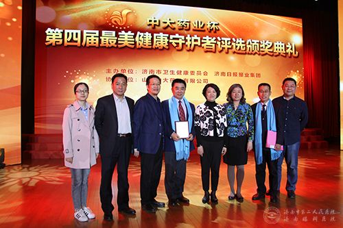 4月21日上午,中大药业杯第四届“最美健康守护者”颁奖典礼在龙奥大厦举行。济南市二院“北川光明行”公益救助行动医疗团队荣获“最美集体”称号,眼科主任王旭荣获“最美医生”称号。