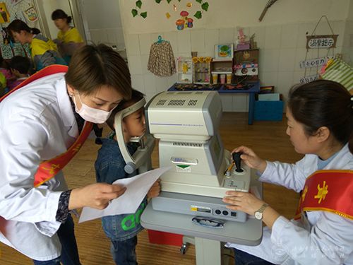 青年志愿者为小朋友进行验光复光