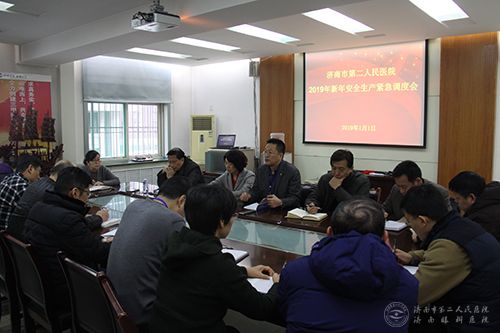 为进一步强化安全生产工作,坚决防范和遏制各类安全生产事故,2019年1月1日上午8:30, 济南市二院召开安全生产工作专题会议,认真传达市卫计委12.31会议精神,全面贯彻落实安全生产工作部署。