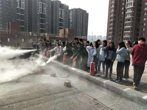 市二院安保科负责人为同学们播放了消防安全纪录片,并详细讲解了医院消防安全管理制度,讲授了灭火器的灭火原理和使用方法。同学们还现场参加了防火实战演练。