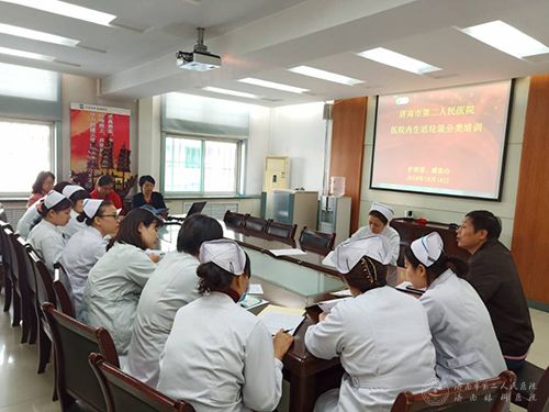 据济南市政府办公厅关于印发《济南市生活垃圾分类工作总体方案(2018-2020)》的通知,按照卫计委工作部署要求,10月18日下午,萝莉社 护理部、感染办、总务科联合开展了医院内生活垃圾分类专题培训工作,全院护士长及保洁公司负责人参加了培训。