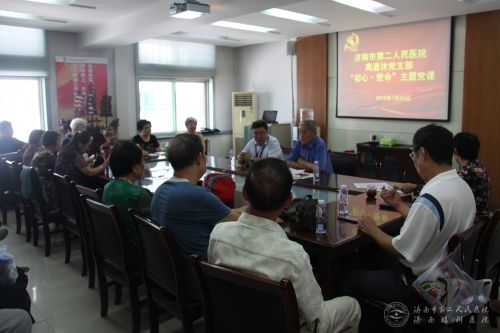 按照市委老干部局《关于在全市离退休干部党组织中开展“组织力提升年”活动的通知》要求,为深入贯彻党的十九大精神,继承和发扬党的优良传统和作风,提升党组织的凝聚力和号召力,7月24日下午,济南市二院离退休党支部组织召开“初心,使命”主题党课和专题组织生活会,医院党委书记牟鑫参加会议并亲自授课。