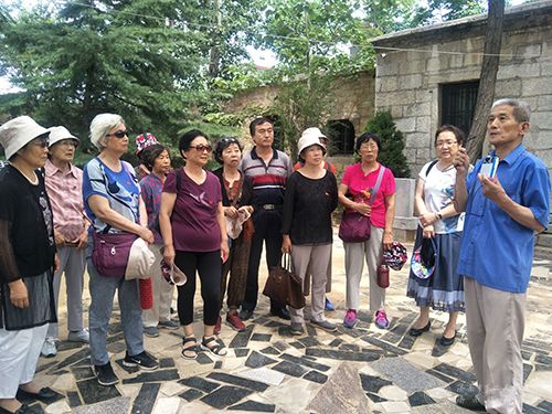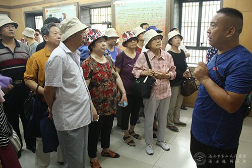 老党员们认真听取纪念馆讲解员讲解大峰山历史