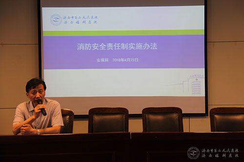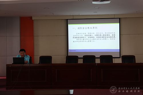 根据市公安局消防分局和市反恐办相关工作要求,进一步宣传普及消防安全知识和反恐知识,提高医护人员消防安全意识和反恐处置能力,6月8日及11日下午,济南市二院分2批对全院职工进行了消防安全和反恐处置知识培训讲座。会议由分管院长张毅主持,全院职工450余人参加了培训。