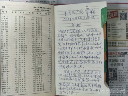 党的十九大开幕式那天,史秀云主任在家全程收看了电视直播,在医院发放了新《党章》和《党的十九大报告》后,一连又学习了两遍。好记性不如烂笔头,老人年纪大了,为了加深记忆和理解,便开始了抄写。“每天做完家务,或是睡觉以前我都会拿出来抄上一段,一连抄了几个月。”老人说她抄党章并不觉得累,身为一名老党员,她想通过这种方法提醒自己加强理论学习,提高党性修养,同时牢记党员的责任使命,做好周围群众的思想领路人,为医院和社会的和谐发展多做贡献。(离退休职工管理科 陈永红)