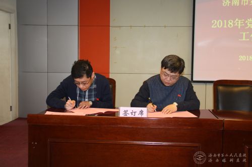 会上,与会同志们一同观看了党风廉政教育警示片《永不停歇的征程》。院党委书记牟鑫与各科室主要负责人签订了《2018年度党风廉政建设目标责任书》。