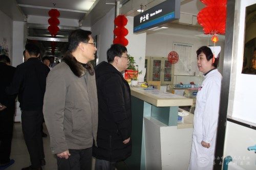 2月16日农历大年初一,萝莉社 院领导到医院,看望慰问坚守岗位的医护人员,督导节日期间的医疗安全工作。院党委书记牟鑫,纪委书记、副院长程晓麟,副院长张毅、部分职能科室主任参与慰问活动。