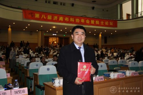 市二院眼科主任医师王旭的《无力矩双连续缝合法行光学性角膜移植的临床研究》荣获济南市自然科学学术创新奖一等奖,并在第八届济南市科协年会暨院士论坛上接受颁奖。医院眼科副主任医师张苗苗的《EX-PRESS青光眼引流器植入术与Ahmed青光眼阀植入术治疗难治性青光眼的对比研究》荣获二等奖,眼科副主任医师陶远的《硫辛酸治疗对干性老年黄斑变性患者视力及生存质量的影响》荣获三等奖,同时王旭、陶远被授予“优秀人才提名”奖。佳绩的取得充分展现了市二院医务工作者刻苦钻研学术、积极创新、勇攀科技高峰的科学精神。