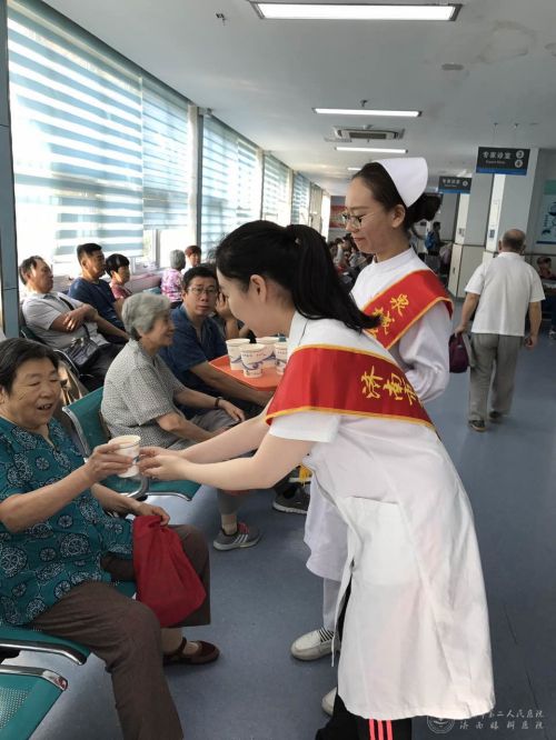 “市二院这所老牌眼科医院,不仅技术好,服务也是没得说。我因为青光眼夏天来二院看病,这里的志愿者就给我送绿豆汤。没想到一个月后来复诊,医院又推出了秋梨汤。他们不但给我治好了眼病,还提供这么好的服务,我们好多患者都感到很温暖。”前来就诊的李大娘激动地说道。“我是从福建慕名来二院看眼病,身边的朋友有很多在二院治好眼病的,我才大老远赶来济南。没想到他们医院服务这么好,我得照下来,给他们宣传宣传。”翟先生一边说一边拿着手机给送秋梨汤的志愿者拍照。