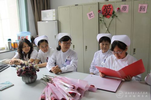 活动中,由荣获2017年济南市“最美家庭”荣誉称号的内二科护士吴文丽向大家分享了她与丈夫杨海的感人爱情故事。吴文丽是一位军嫂,丈夫杨海是一名驻守新疆的边防军人,这个七夕节,由于两地分居与交通的不便,夫妻俩像往年一样无法团聚,她和远在千里的丈夫成了现实版的“牛郎织女”。然而,身为边防军人的妻子,吴文丽从未埋怨生活的艰辛与孤独的守候,自结婚以来,在生活上她任劳任怨地替丈夫奉养双亲,洗衣做饭,照顾年幼的孩子,在工作上她认真负 责、兢兢业业,真诚地对待每一个患者,吴文丽用实际行动诠释了一位平凡军嫂“自立自强,无私奉献”的家国情怀。