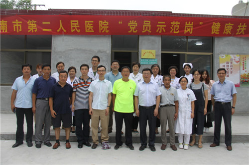 党委书记牟鑫,纪委书记、副院长程晓麟带领党员志愿者一行15人到医院“第一书记”任职的柳埠镇外石村开展“党员示范岗”健康扶贫活动。