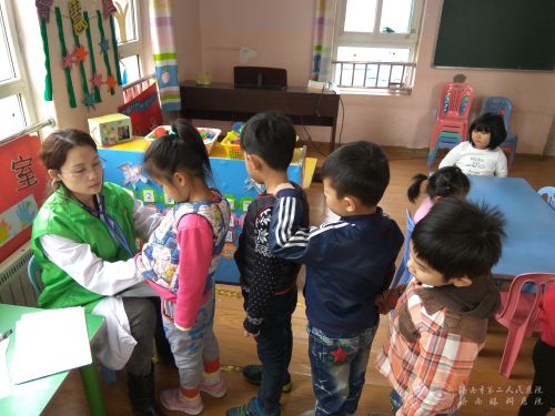 “健康驿站”志愿者来到匡山街道办事处红苹果幼儿园,为孩子们进行了健康体检。