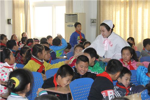 活动开始后,市二院志愿者为200多名孩子讲解了如何保护眼睛的科普知识,并播放了保护眼睛的科普宣传片,孩子们看得很投入,并积极地向授课老师提出问题,现场气氛十分热烈。此次活动授课专家是市二院主治医师张辉,她通过眼球模型直观生动地为孩子们解答了疑惑。此外,护理志愿者还为孩子们演示了七步洗手法,通过生动的动作展示告诉孩子们洗手的重要性以及如何注意用眼卫生。