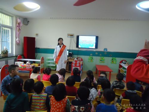 活动现场,市二院的志愿者王婷、张文文用谜语、指五官、闭眼小游戏等小朋友们喜爱的方式与小班的20多名孩子进行了互动,在游戏中向孩子们宣传了爱眼护眼知识。小朋友们听得非常专注,还不时举起小手回答授课老师的提问,现场气氛十分活跃。活动最后,授课老师还为小朋友们讲解了视力表的使用方法,并为每位小朋友送上了视力检查表、环保袋、宣传手册等小礼物。