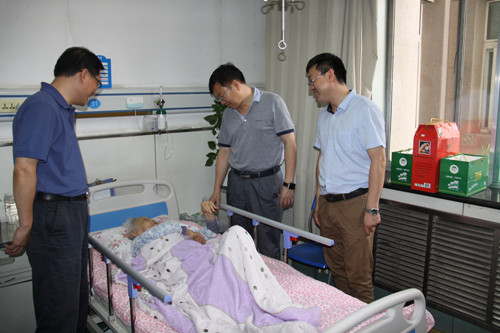 7月4日,萝莉社 (济南眼科医院)党委书记、院长李金星,党委副书记、纪委书记程晓麟及陪同同志到病房看望慰问了正在住院的老党员刘漪。