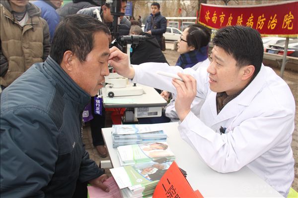 活动现场正逢长清区人力资源招聘会,上午8:30,来自附近的居民便陆续来到广场的义诊点,不少应聘结束的人员也前来检查咨询,他们或在医院宣传易拉宝上 寻找自己的对口眼疾,或一边看着手里的保健手册一边等待免费的眼科检查,还有的直接与眼科专家们交流起了眼病经历,了解日常保健常识。义诊台前,3名眼科 专家刚刚下车便被老百姓围聚中间,检查、诊断、咨询……市二院的眼科专家们耐心细致地为前去问诊的居民进行了眼科检查,并根据检查结果提出医学建议,进行 健康指导。本次活动,共为100余名居民提供了免费眼科检查、健康咨询等服务。同时,现场还免费发放了健康宣传资料及环保袋,深受大家欢迎。眼科专家还提 醒大家,近日天气变化不定、干燥风大,眼疾及各种老年性疾病患者明显增多,尤其是长时间处于户外工作的劳动者多会出现迎风流泪现象,如果没有疼痛、分泌物 过多等明显症状,大家只要注意卫生用眼即可,无需过分担心,若有明显不适需及时到正规眼科医院就诊。