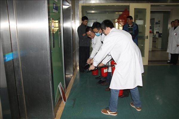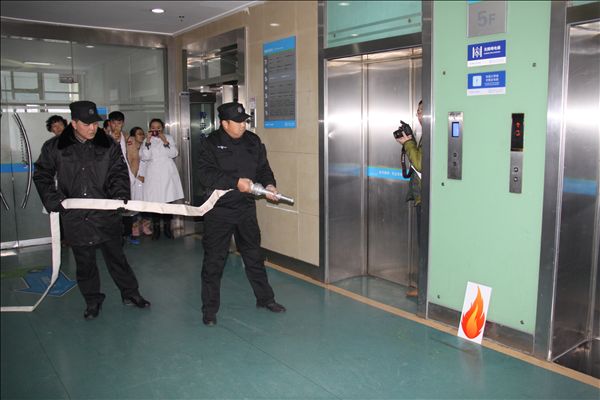 (济南眼科医院)保卫科在医院病房楼五楼组织了消防应急演练。