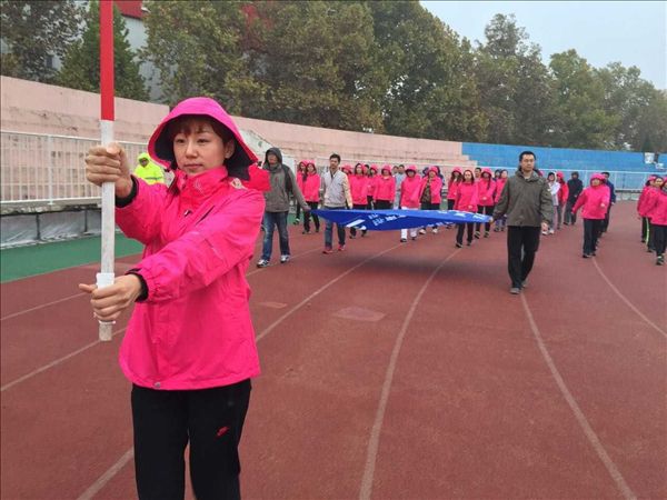 为迎接即将举办的卫生计生系统运动会,10月27日,萝莉社 (济南眼科医院)组织参赛运动员冒雨练习入场式方阵队列。