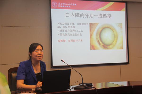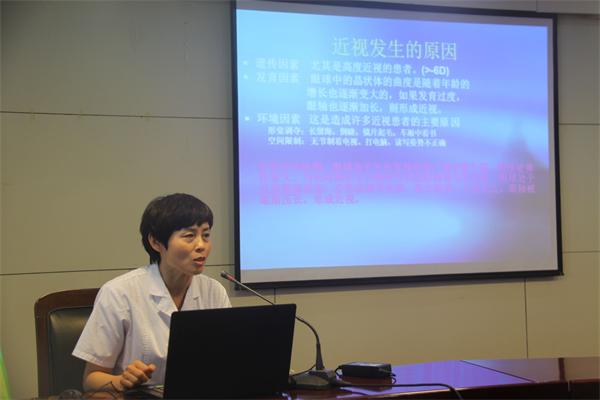 屈光手术中心的主任医师刘蕾和白内障科的副主任医师王晶,围绕群众们普遍关心的眼部疾病问题,分别作了题为《近视防治与激光手术》与《白内障科普知识》的健康讲座。讲座中,两位专家针对近视眼和白内障的病因、分类、发病情况、治疗方法以及日常保健等方面进行了详细地讲解和分析,引导群众在日常生活中加强自我眼保健意识,注意用眼卫生,同时指导患者及早就医,以免延误病情。精彩、生动的讲座赢得了全场听众的阵阵掌声。