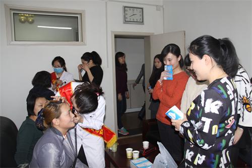 市民服务热线是党委政府联系群众的重要平台,为社会各界和广大市民提供各类便民、咨询服务。由于工作性质的原因,热线值班员需要长时间面对电脑屏幕,很多人患有不同程度的干眼症、结膜炎等眼科疾病。志愿服务队的青年眼科专家们为值班员进行了视力、眼表、眼底等多个眼科项目的认真检查,详细回答了大家提出的问题,为患有眼科炎症的工作人员赠送了滴眼液。一个下午的时间,先后有120余名值班员接受了义诊服务。很多工作人员表示,平时眼睛常有干涩痛痒的不适感,一直没有时间进行全面的眼科检查,今天不但享受到了专业诊断,还获得了免费药品,你们来得太及时了,服务太周到了。