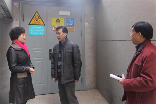 检查组一行在副院长张毅以及相关科室负责人的陪同下首先来到病房门诊,查看了医院大厅、走廊等人员密集场所的消防设备,检查了消防器材配备情况及压力表是否完好有效等。随后,检查组在氧气间检查了氧气配备、防爆灯、防静电皮垫等设施的管理情况。在医疗垃圾废物处理间及医院配电室,检查组现场听取了工作人员关于值班情况的汇报,并询问了日常医疗垃圾处置以及用电安全运行情况。最后,检查组来到急诊室,检查了抢救设备、药品等情况。