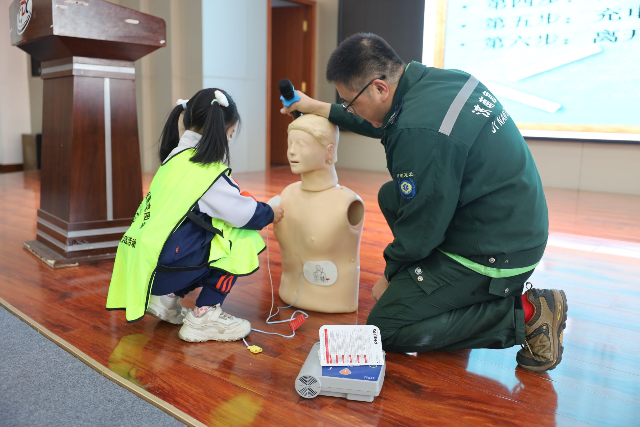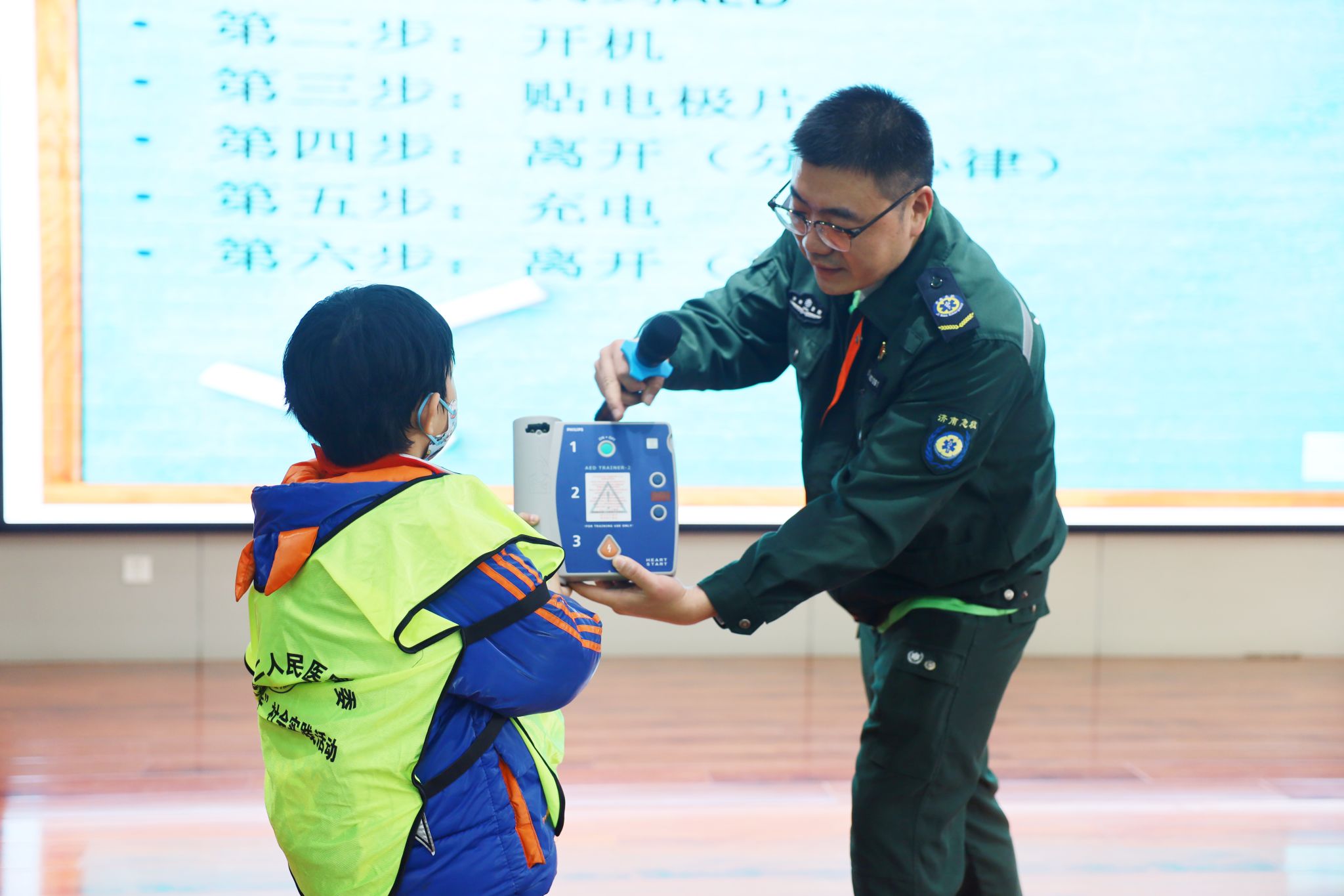 小朋友体验操作AED
