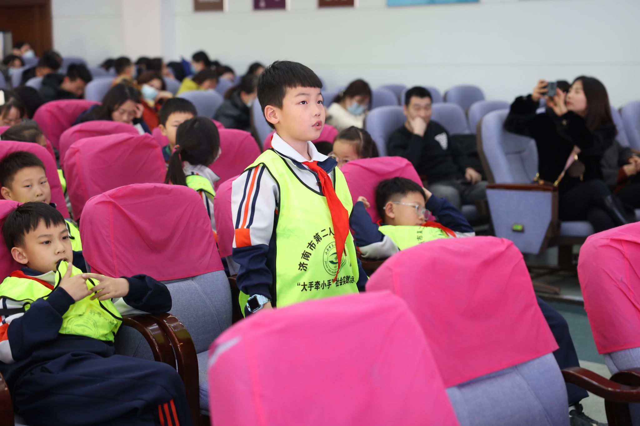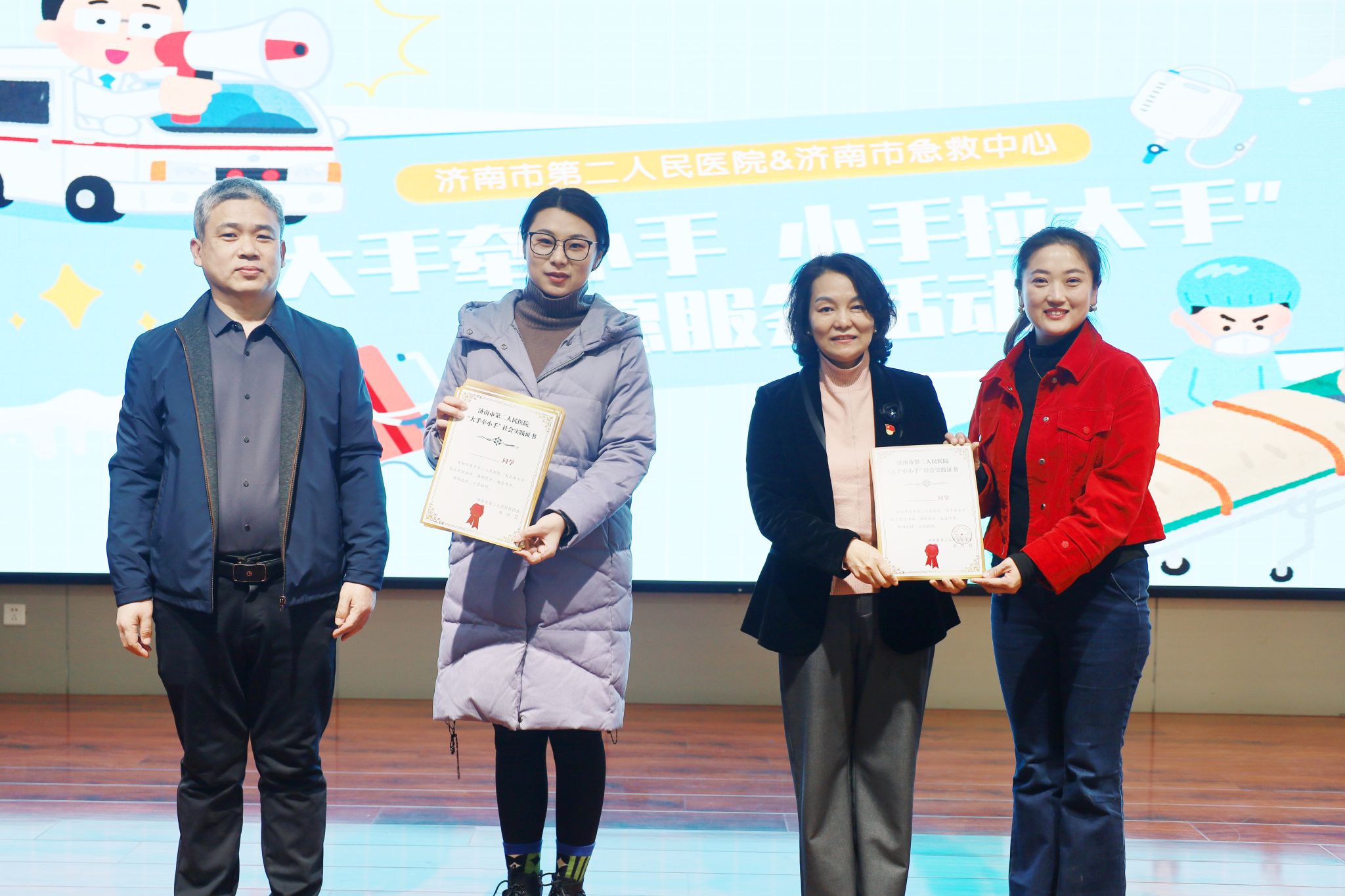 )携手济南市急救中心开展“大手牵小手 小手拉大手”志愿服务活动,来自天桥区枫景小学的130余位学生及家长,怀揣着对医学的好奇与向往,通过“教、学、做”开启了一段沉浸式医学体验。