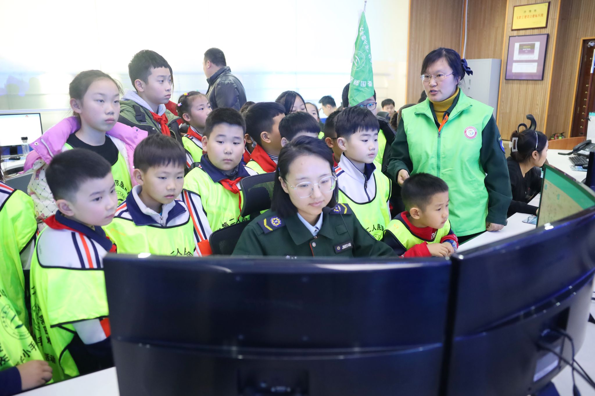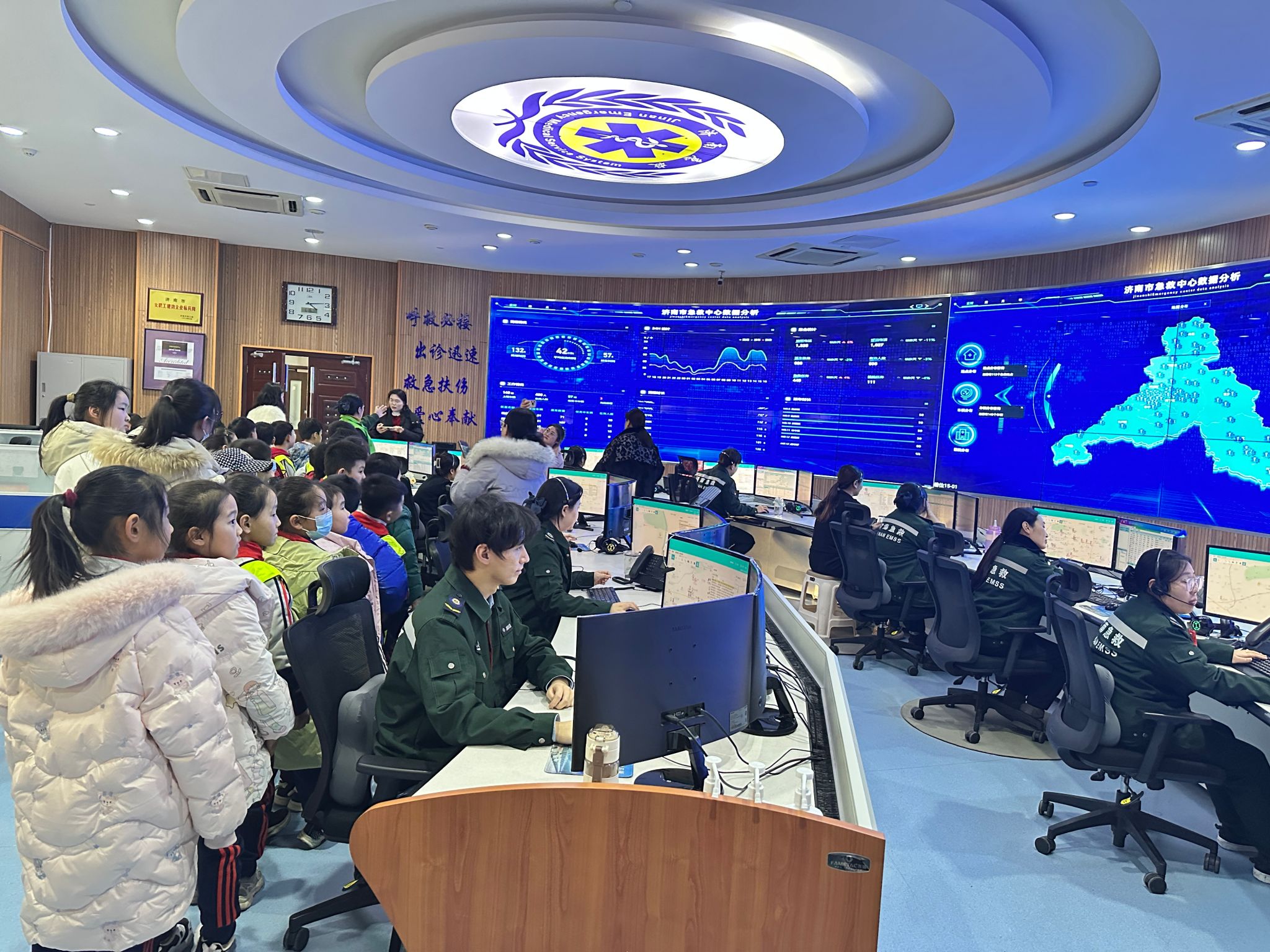 随后,学生们近距离参观了各种类型的急救车,还在急救中心拯救生命志愿服务队志愿者们的带领下走进120急救大厅,了解急救调度员的调派急救车过程,全市急救站分布及调度工作原理,并掌握了拨打120急救电话时的注意事项。