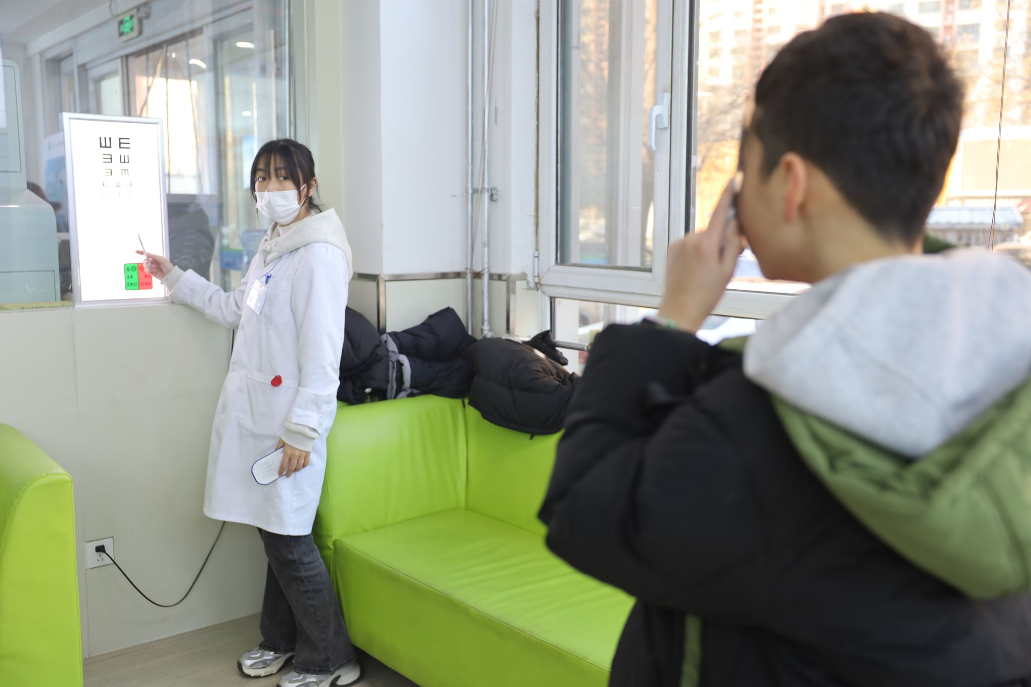 志愿者为小朋友测视力