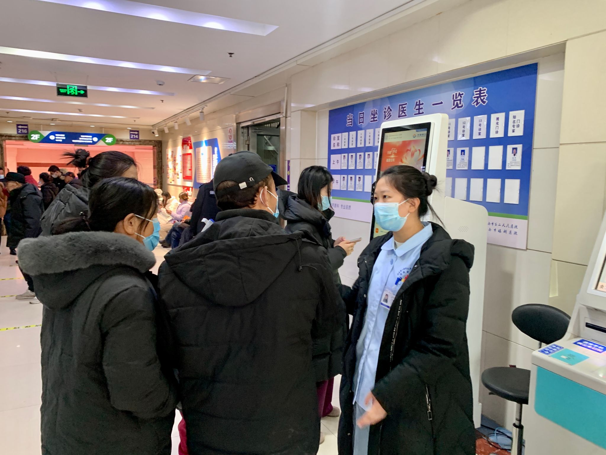 医院通过完善线上预约系统,引导患者分时段就诊,尽可能缩短患者就诊等待时间。在门诊大厅,增派了导医导诊人员,为患者提供咨询、指引服务,帮助患者快速找到就诊区域,减少门诊滞留人群。