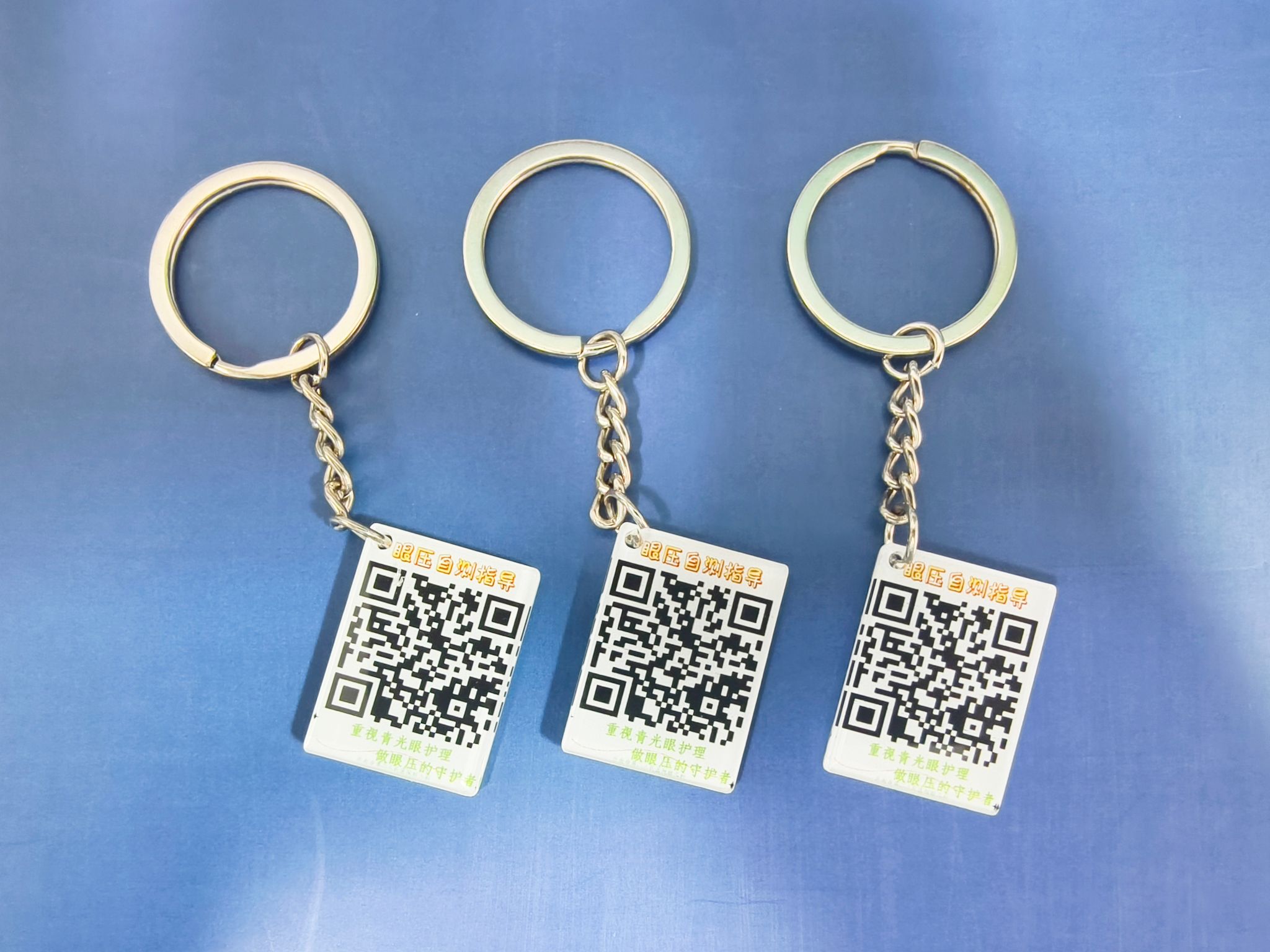 以往许多患者反映传统的纸质版眼压自测指导不便携带,容易丢失,针对这个问题,眼三科护理团队,集思广益,几经改良,由传统的纸质版宣教,改良为升级版的眼压自测指导—二维码钥匙链形式。它小巧精致,可以挂于钥匙随身携带,或作为装饰品挂在包上。有了它,患者及家属只需用手机扫描钥匙链上的二维码,就可以随时听读眼压自测要点,再也不用担心宣教材料找不到,并且还可以随时随地向亲友介绍眼压自测的方法。