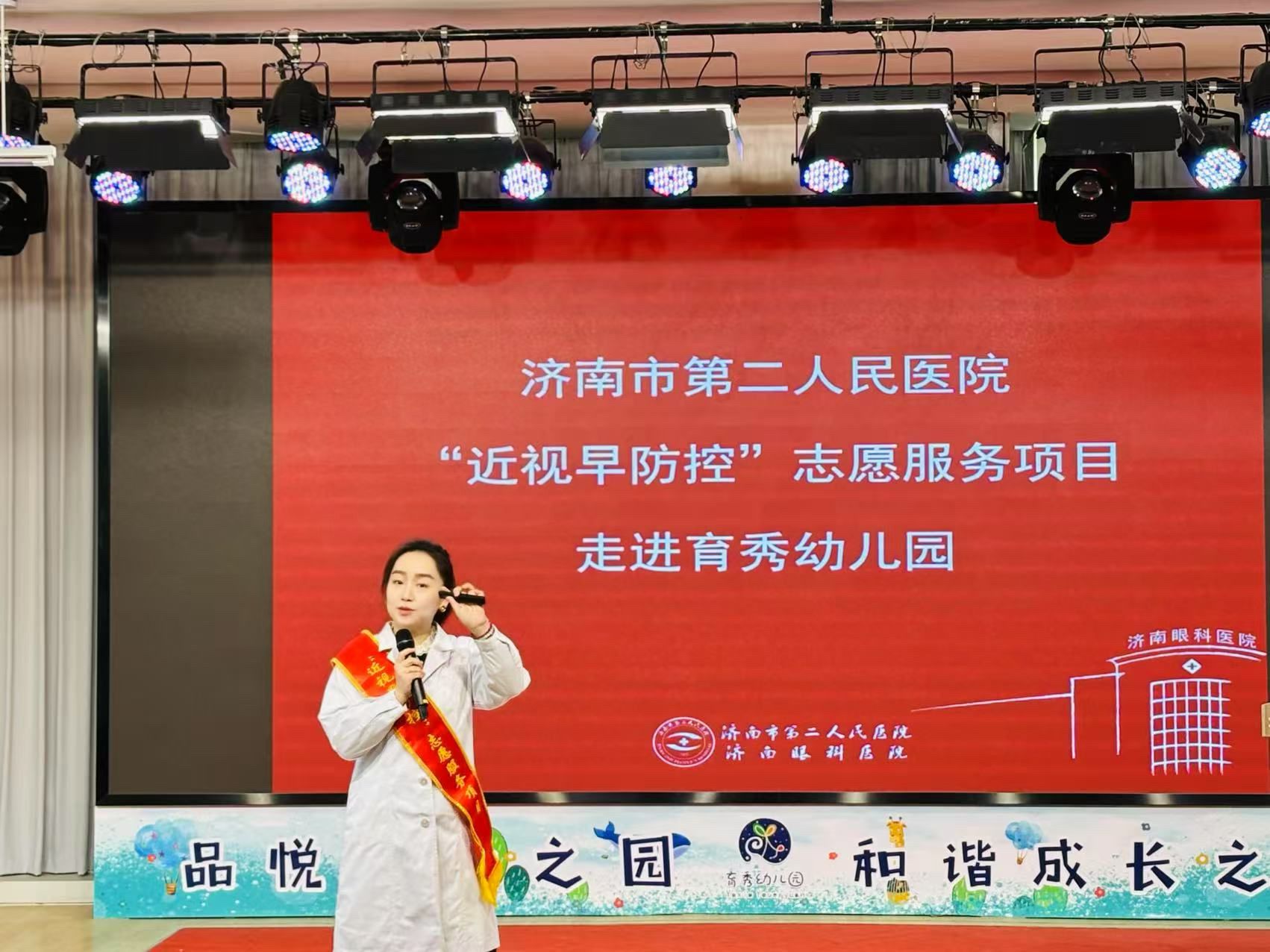 )走进济南市市中区育秀幼儿园开展“近视早防控”青年志愿服务活动。