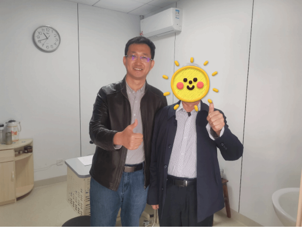 黄超是来自市眼科医院(市二院)的眼科副主任医师,对各类眼科疾病具有丰富的诊疗经验。黄超医生接诊后,为患者眼部情况进行了全面的评估,对于81岁的邱爷爷而言,手术风险和难度都相对较高,但黄超大夫凭借高超专业技能与丰富临床经验,结合先进设备精准操作,最终顺利完成手术。出院前,邱爷爷的视力便奇迹般地提升至 0.8,原本模糊的世界再度清晰呈现。老人满脸洋溢着喜悦,感激之情溢于言表,他主动与黄超医生合影留念,记录下这一珍贵时刻。