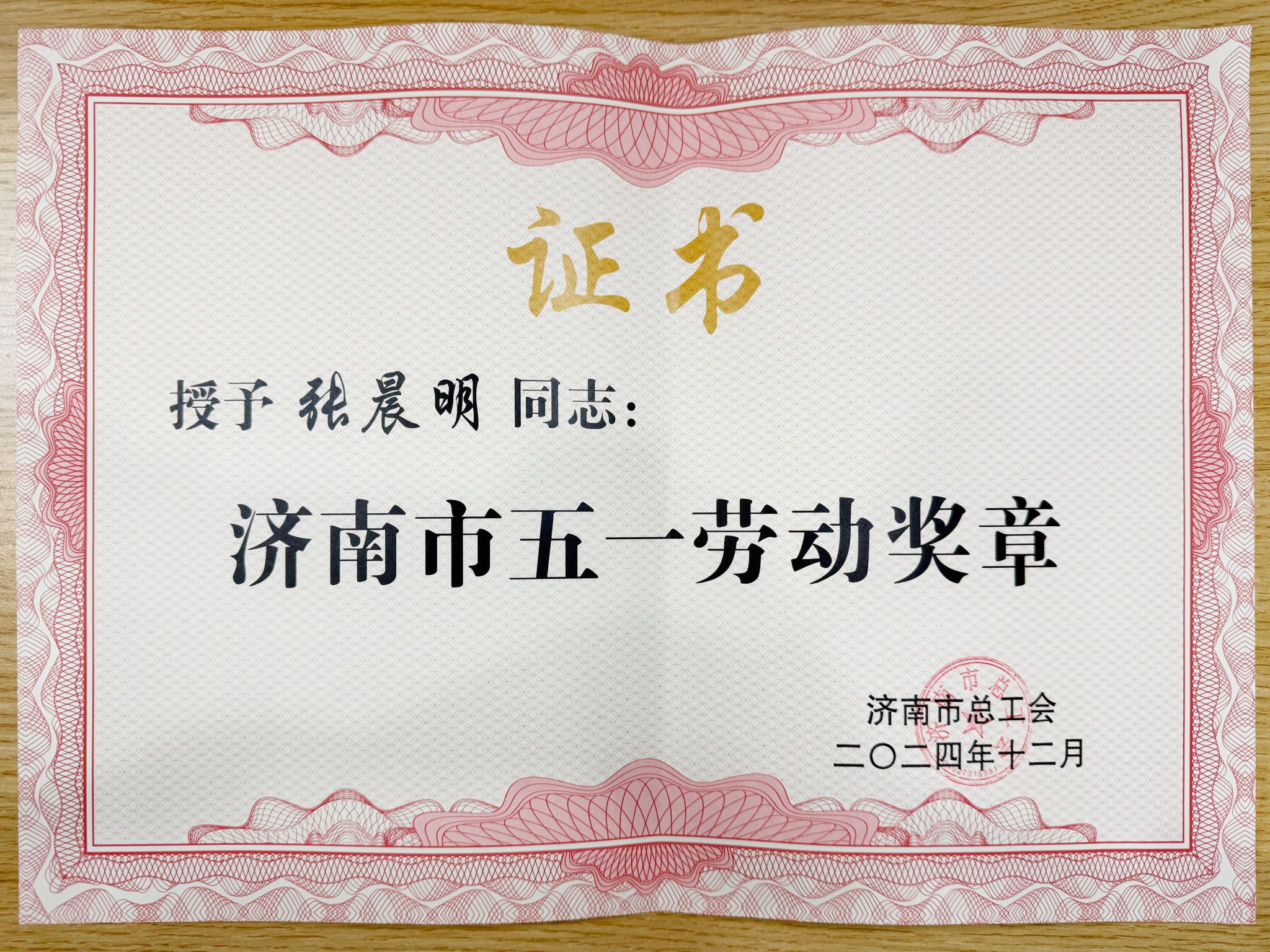 )张晨明获评济南市五一劳动奖章。