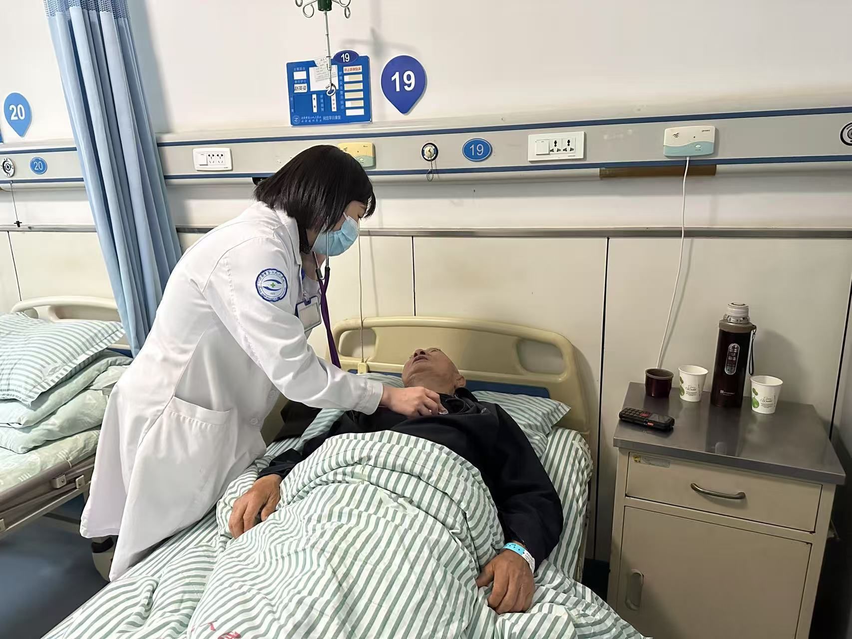 内科医生来为老人检查身体