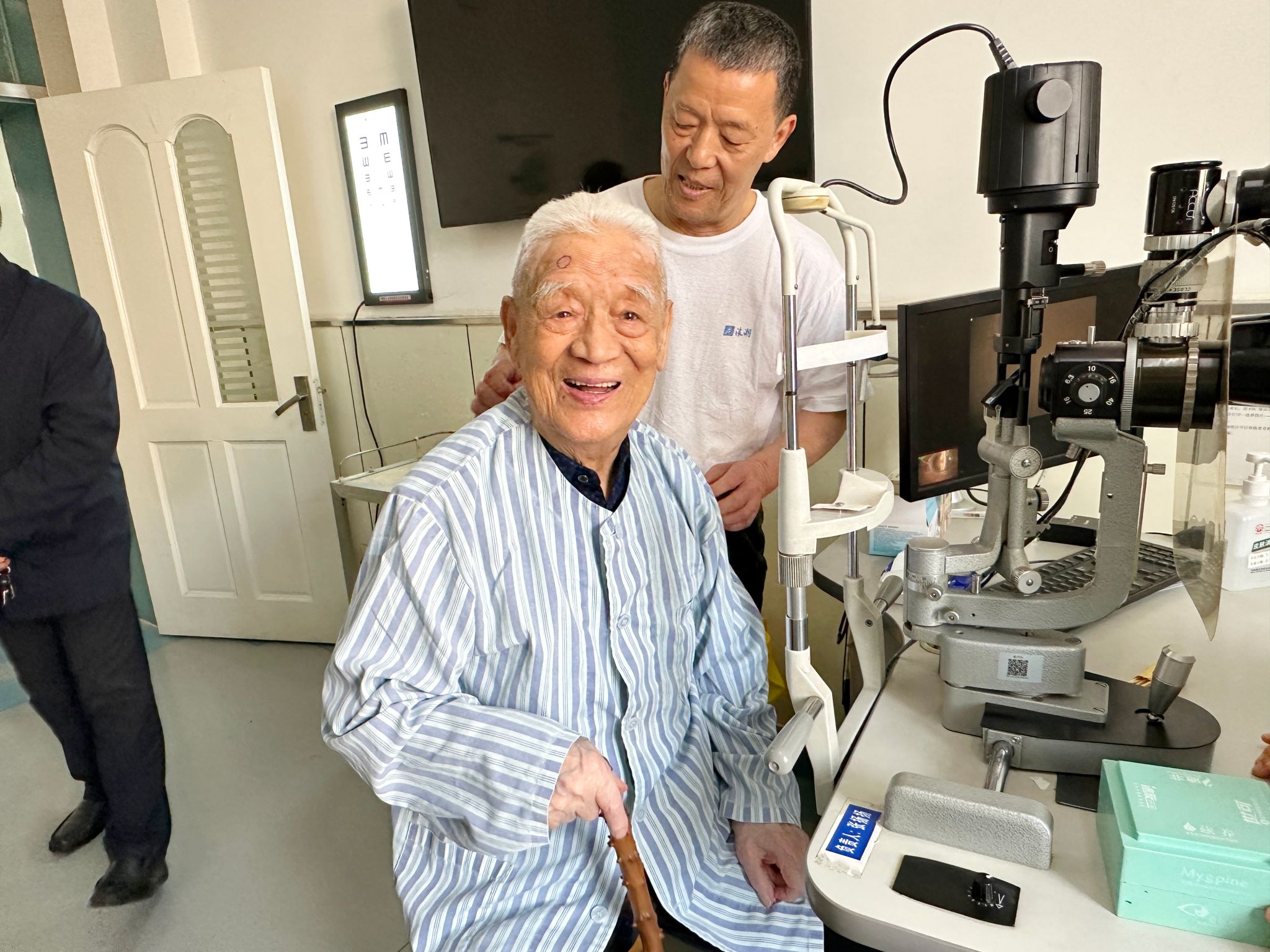 )白内障一科(眼四科)病房迎来一位特殊患者——95岁高龄的刘爷爷。老人因对眼科手术充满恐惧一直拖着没做手术,在女儿亲身体验了市眼科医院(市二院)的白内障手术后,刘爷爷终于鼓起勇气进行了手术,在医院医护团队的配合下重获清晰视界。