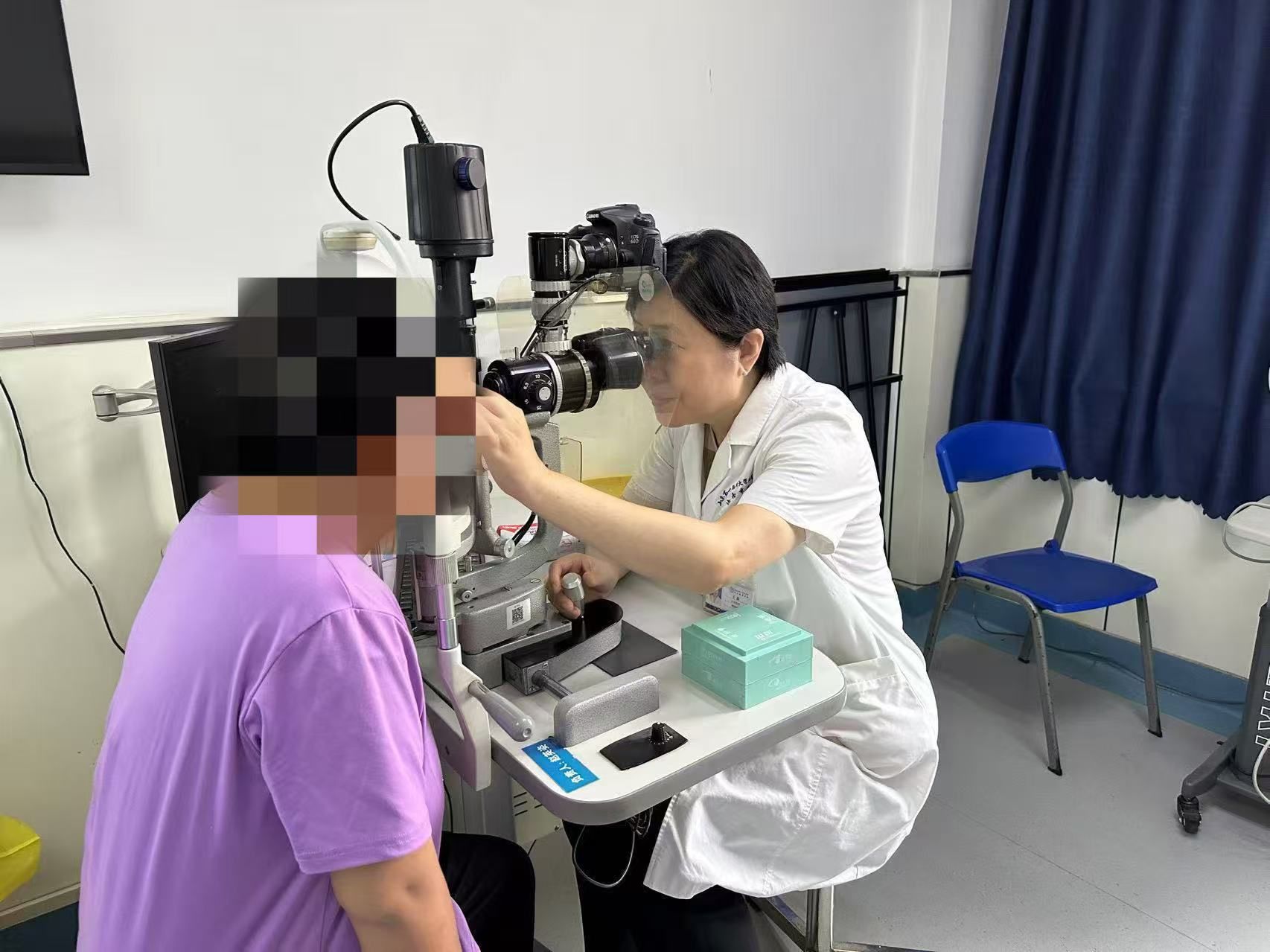 王晶主任为患者检查眼睛