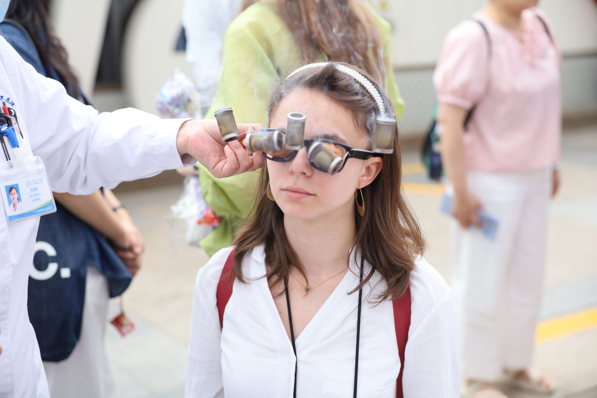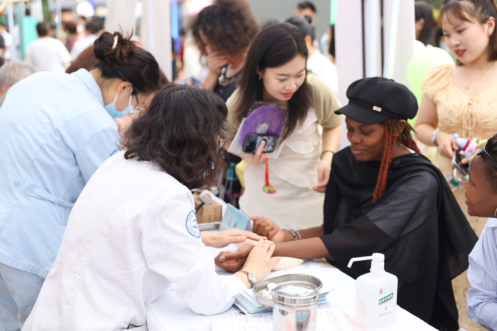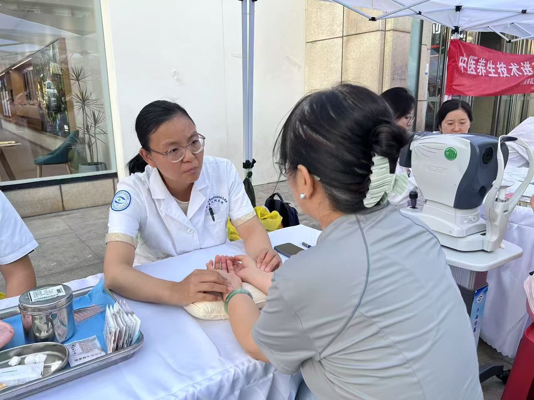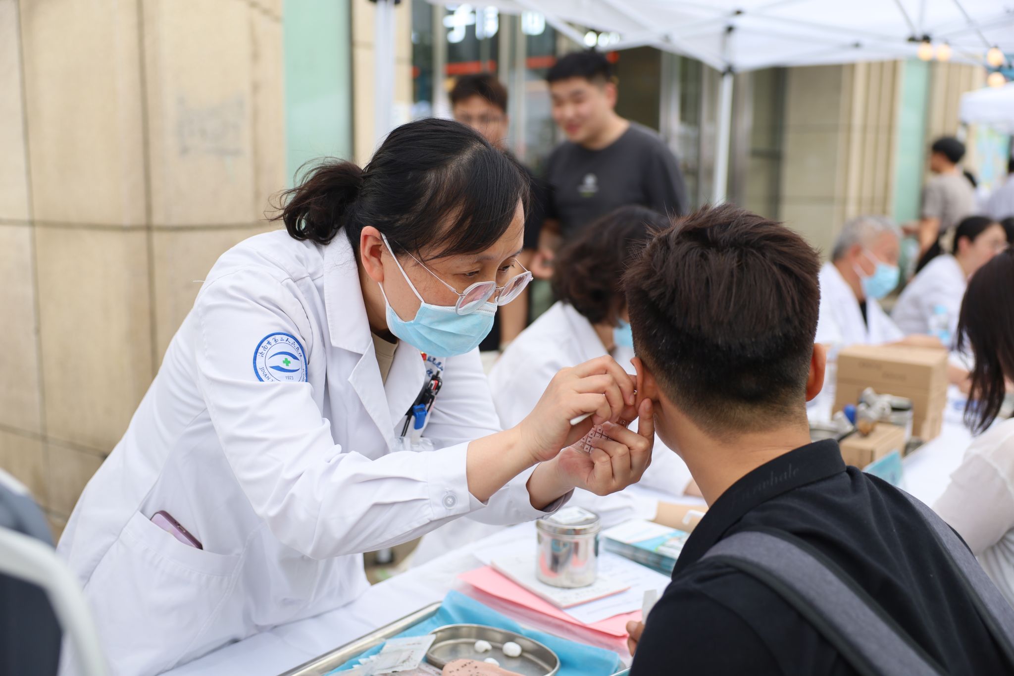 义诊台前排起长队。医院中医眼科专家通过“耳穴压豆”“核桃灸”等传统中医治疗方式,吸引群众体验,传播国学知识。中医专家们还通过眼保健操指导、健康宣教等形式,现场指导正确的眼穴位按摩手法,助力改善眼疲劳。眼科专家团队还携带眼科专业设备为群众提供了眼科疾病基础检查,尤其是针对儿童近视等高发眼病,提供了专业诊疗建议。医院专家团队还现场为家长解答儿童用眼习惯、视力保护等疑问,帮助家长树立“早预防、早干预”意识。