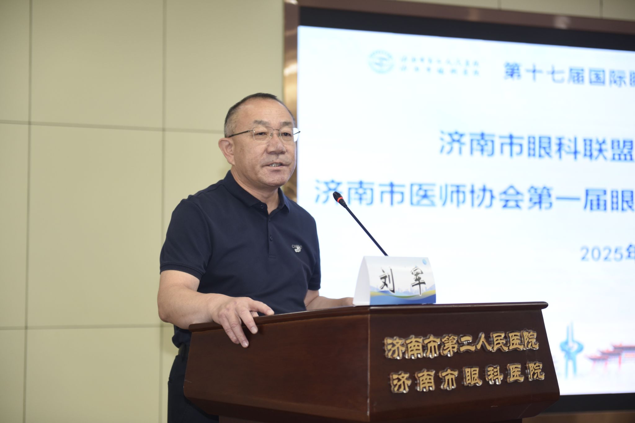 会上,市眼科医院(市二院)院长刘军向学术会致开幕词。他对与会代表的到来表示欢迎,对长期以来支持医院眼科事业建设发展的各级领导表示衷心的感谢并对会议议程做了详细的介绍。他表示,济南市眼科联盟自成立以来,始终紧密围绕党和国家卫生与健康事业发展大局,以专科为纽带,探索眼科分级诊疗模式,推动优质卫生资源下沉,积极开展公益服务,服务基层群众。医院今后将继续加大人才培养力度,建设眼科学习共享平台,为我省眼科诊疗事业的进步和发展起到积极的推动作用。