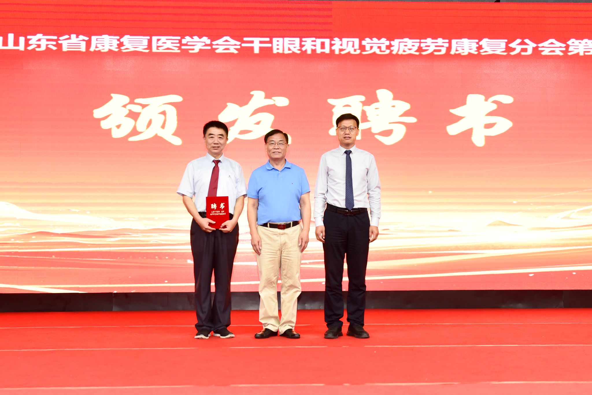 )党委书记东光国、美国明尼苏达大学Eric教授、山东第一医科大学附属眼科医院院长史伟云、山东省康复医学会会长侯俊平等嘉宾分别致辞,对分会的成立表示热烈祝贺,并对其未来发展寄予厚望。开幕式上,侯俊平会长和王绪华秘书长共同为主任委员、副主任委员颁发了聘书,标志着山东省干眼与视觉疲劳康复事业迈入新阶段。