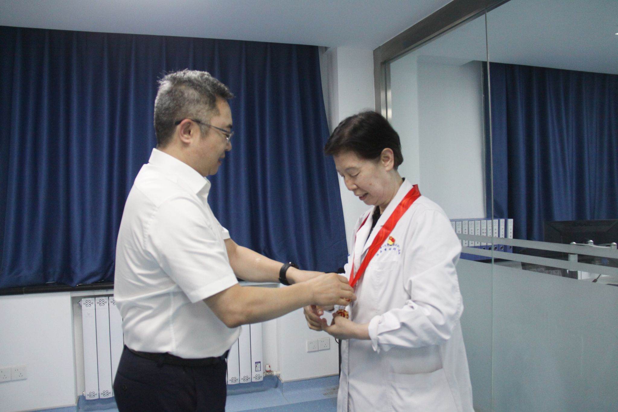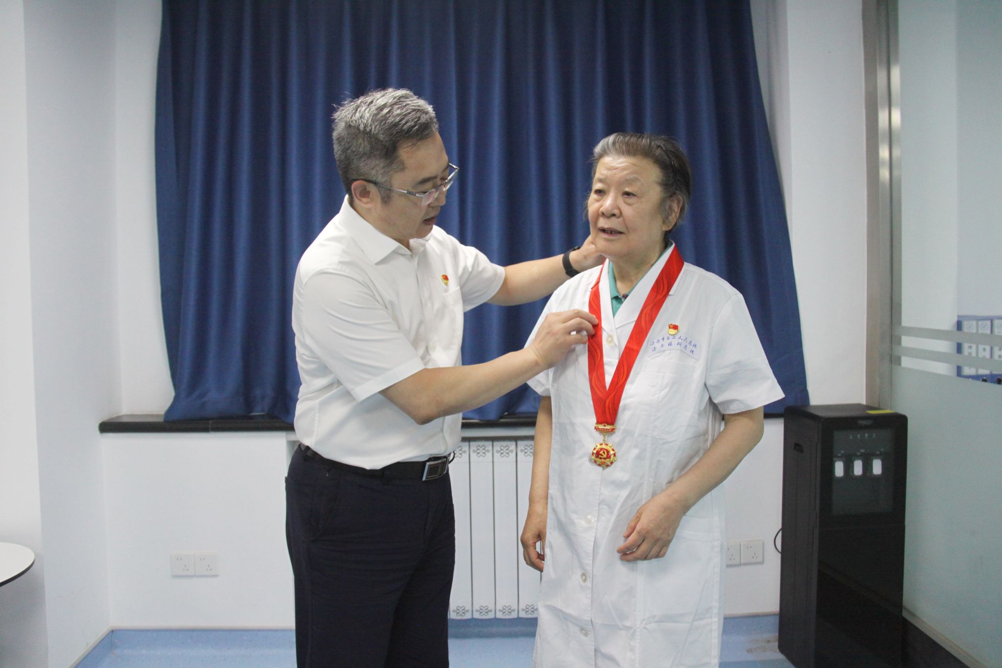 6月27日,院党委书记东光国、纪委书记刘伟以及离退休管理科负责同志,专程前往戴军、初宪华的专家诊室进行慰问。东光国书记亲手为两位老党员佩戴纪念章,并送上党组织的祝福和慰问品。慰问过程中,东光国书记与老党员们亲切交谈,关切询问她们的身体状况和生活情况,认真倾听她们对医院发展的意见和建议,并对她们为医院建设作出的贡献表示衷心感谢。
