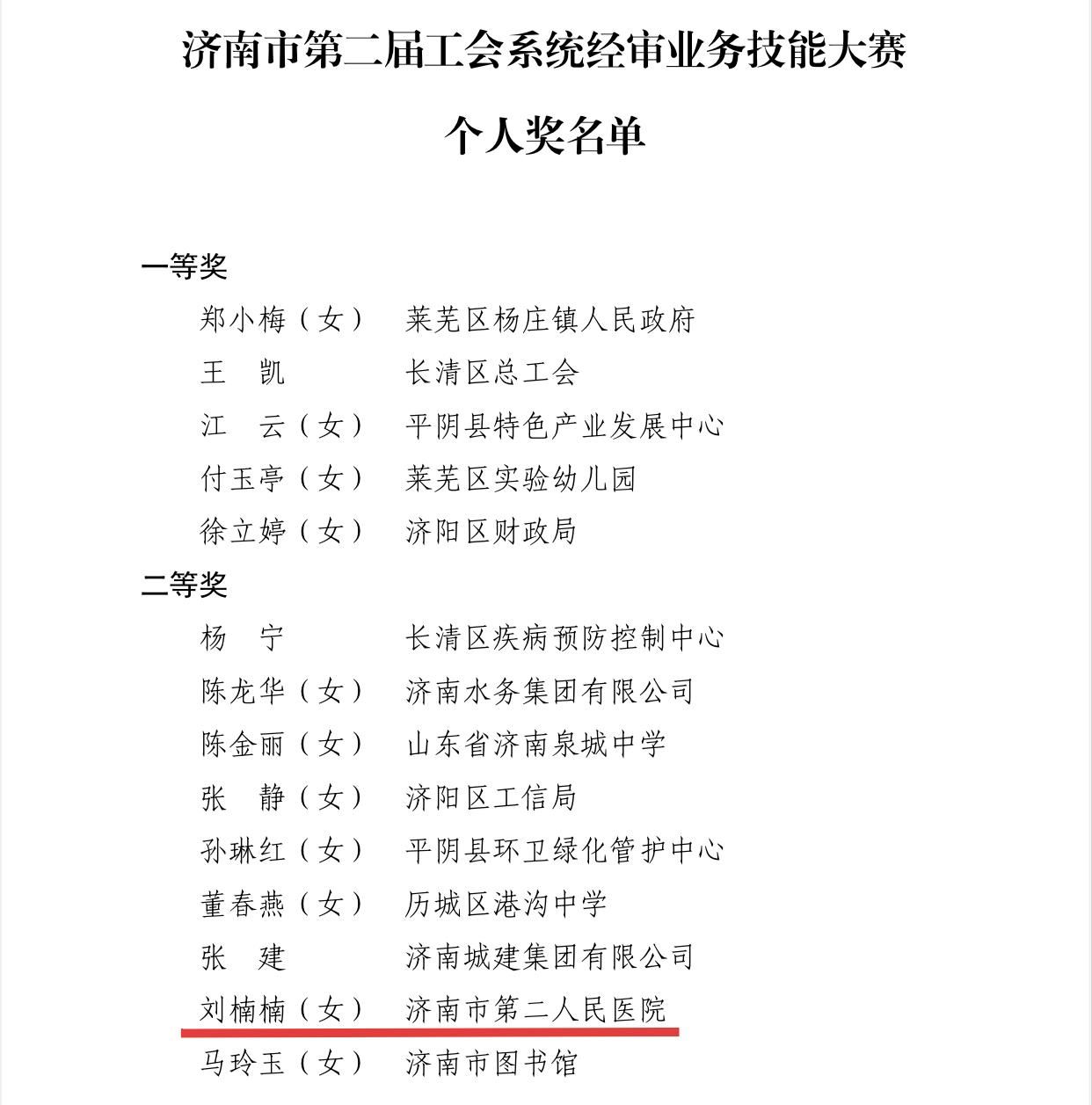 )财务科副主任刘楠楠参赛,最终荣获济南市第二届工会系统经审业务技能大赛个人奖二等奖。